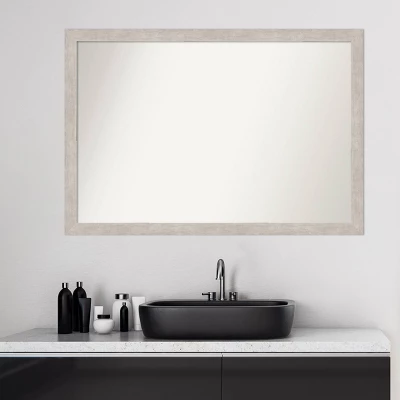 Give your bathroom the finishing touch with this 100% real wood Non-Beveled Wall Mirror framed with the Marred Silver frame. Individually made using traditional custom framing techniques, it has the quality you would expect from your local frame shop. It holds its value with premium finishing that can be appreciated up close. Because of our attention to detail and focus on artistry, architects, interior designers, and homeowners alike choose this mirror to create beautiful living spaces.