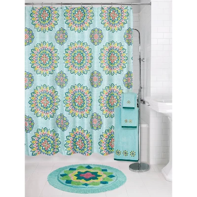 The Ariel Medallion Bath Rug from Allure Home Creation is a perfect accessory for your bathroom. Made from 100% cotton, this aqua fringe-border bath mat is exquisitely designed with a floral-medallion motif in the center to brighten up your space with vibrant colors, while its tufted construction lends plush, luxurious comfort underfoot.
