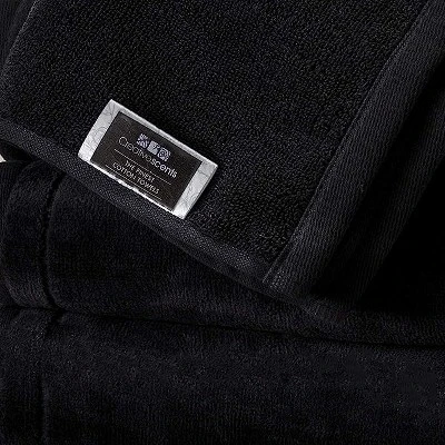 - Set Includes Four Premium Cotton Towels in Black, Each Measuring 11 By 18 Inches.