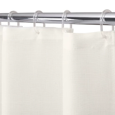 - Reinforced header with 12 buttonhole openings fits standard shower hooks (not included)