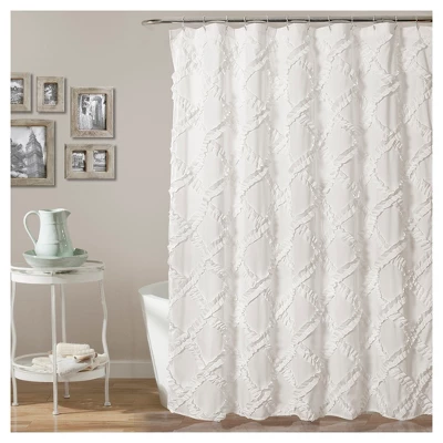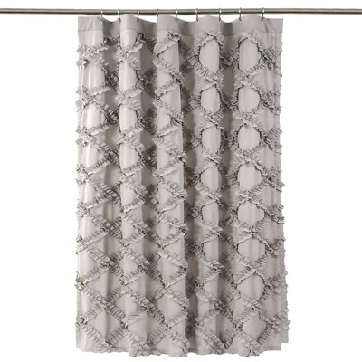 Your bathroom will look incredible with Lush Décor’s Ruffle Diamond Shower Curtain. It will immediately enhance the look of the master bathroom or guest bathroom. The fancy and frilly ruffle detail adds a feminine touch as well as eye-catching texture to instantly brighten the look of your space. This Ruffle Diamond Shower Curtain is perfect for those who love shabby chic style. It’s simple yet feminine design creates a soothing atmosphere, ideal for relaxing at the end of a long day. Along with the design, the fabric is soft and lovely and will make your bathroom feel like you’ve just entered a spa. Measuring 72 inches wide by 72 inches tall, this Ruffle Diamond Shower Curtain is the perfect size for most any bathtub. You can choose from four neutral colors, including gray, white, blush or ivory. It easily hangs with any shower curtain rings or hooks. Because the ruffled embellishments are very delicate, we recommend that you dry clean this shower curtain. If you place this shower curtain in a washing machine or dryer, you risk damaging the integrity of the ruffles. Part of the Ruffle Diamond Collection. Oeko-Tex Certified.