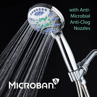 AquaStar Elite High-Pressure Ultra-Luxury 6-setting Handheld Shower Head with 2-zone Antimicrobial Nozzles, Extra-long 6 Foot Stainless Steel Hose and On/Off Pause Mode, Premium Chrome. For superior water pressure and flow coverage the Extra-large 4.3″ face with 3-zone PrecisionFloâ„¢ dial gives you a one of kind experience. The 2-zone Antimicrobial / Anti-clog Nozzles inhibit the growth of mold, mildew and bacteria on their surfaces keeping them cleaner for more water pressure, less cleaning and overall better hygiene. 6 flow settings include: Rain, Massage, Mist, Pause and two mixed modes. Convenient water-saving Pause mode for instant on/off flow control. EPA-registered Lifetime Antimicrobial Surface Protection from Microban®, a global leader in antimicrobial technology. 100% safe and effective for the life of the product. Comes complete with all washers, plumber’s tape and easy-to-follow Instructions. Includes angle-adjustable overhead bracket for hands-free use and storage. Limited lifetime warranty with 100% hassle-free return policy directly from manufacturer.